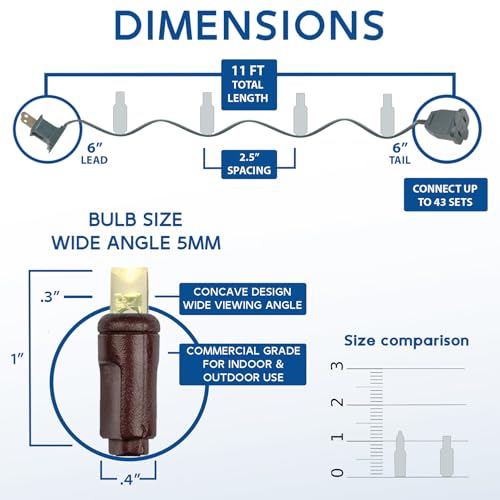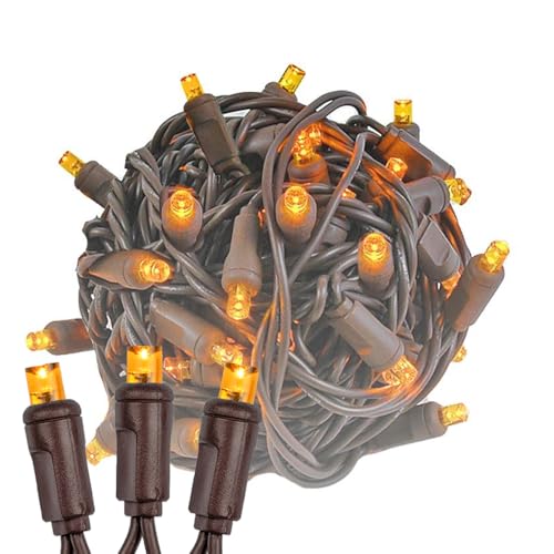 • Novelty Lights 11 Feet 50 Light Brown Wire LED Christmas Lights Outdoor Commercial Grade Amber 5mm Bulbs UL Listed Connectable up to 470 Feet