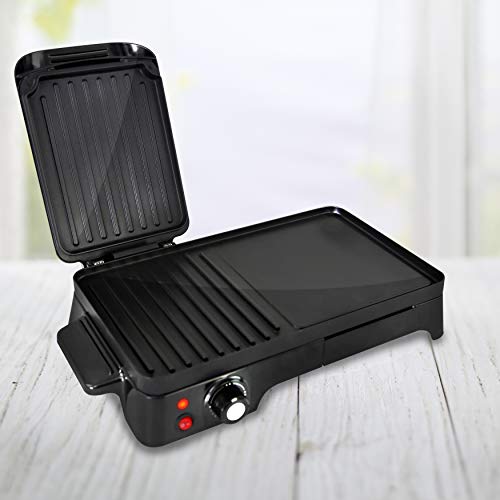 • Nutrichef 2 in 1 Panini Press Grill Griddle Nonstick Coating Temperature Control Multiuse Countertop Sandwich Maker Removable Drip Tray 1500W Compact Electric Griddle 203 x 125 x 53