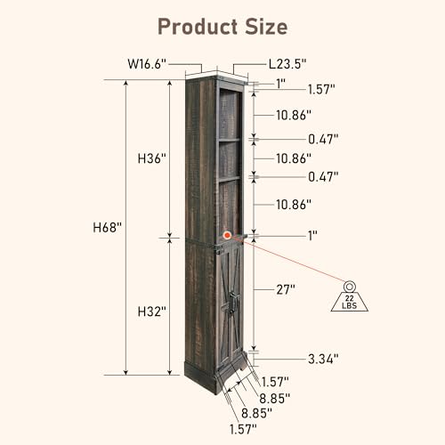Simple Assembly: The cupboard comes with clear, step by step instructions and labeled hardware, making the assembly process straightforward and hassle-free.