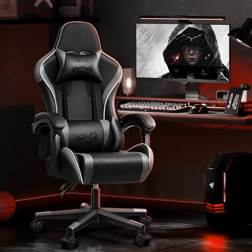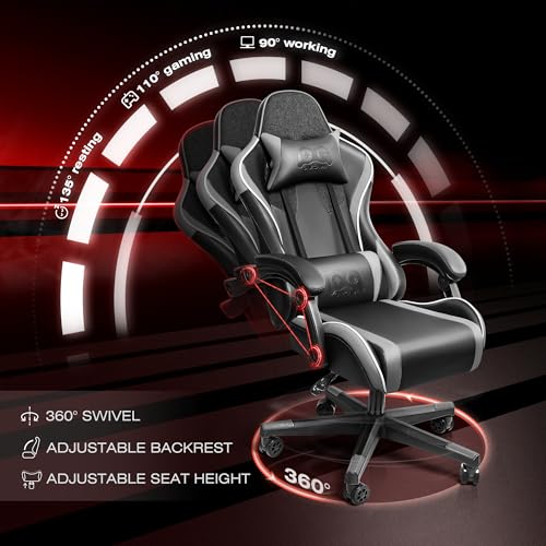 🎮【Practical Features】 The angle and height of the backrest may also be adjusted to provides you with a comfortable sitting posture. Combined with headrest and lumbar pillow to relieve your back pressure. The linkage armrests are filled with sponge, soft and comfortable.360° arbitrary rotation, silky smooth and quiet.