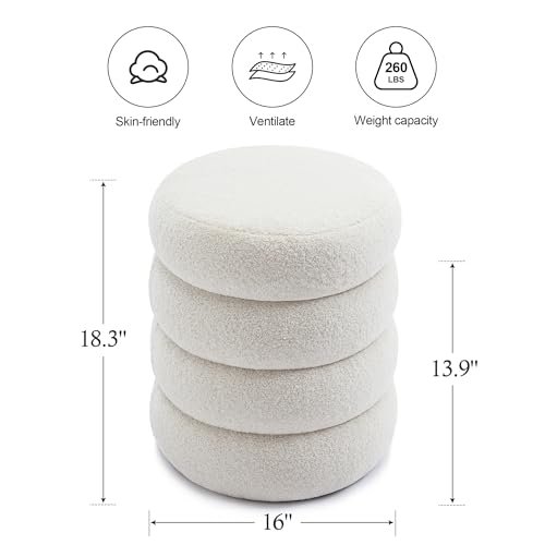 【Round Ottoman with Compact Design】 With dimensions of 16″(W) x 16″(D) x 18.3″(H), this small ottoman is perfect for any decorative environment. The compact design allows for simple placement next to desks, vanities, or wherever an extra seat or footstool is needed.