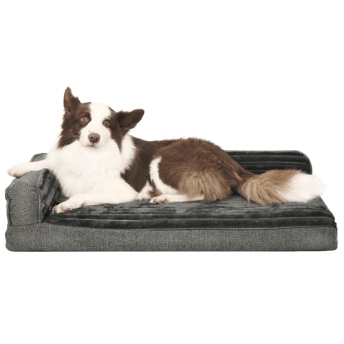 【2-sides dog bed】The large dog bed has 2 pillows, the L-shaped design on both sides will also be extra good Improve for the head and neck, and the other remaining large space can give the dogs better sleeping space, so that the dogs get far and wide the body to loosen up and sleep better.