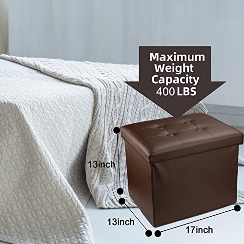 [Strong and durable] This storage ottoman is made of quality E1 MDF, strong and durable, has the load bearing capacity up to 400lbs. Featuring with premium faux leather surface, which is waterproof, easy to clean and to care for. It can protect your storing items and stay in a good condition in a very long time