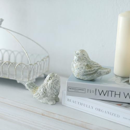 Outdoor Bird Statues Bird Decor Figurines for Home Cement Bird Sculpture for Patio Yard Lawn Ornament, 2style/Set,Indoor Outdoor Stone Bird Decorations Statue