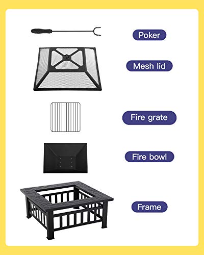 ✿『Simple and Modern Design』: The simple European design of this fire pit, with clever stone textured borders, allows you to heat your food evenly at the same time as the use of it for grilling.Very small screws give the pit an overall feel.This is great if you wish to have to go out for a barbecue or camping commute.Basin mouth dimension32″ L x 32″ W x 14″ H.