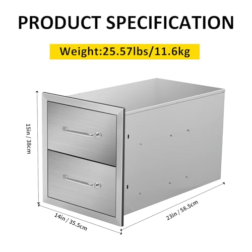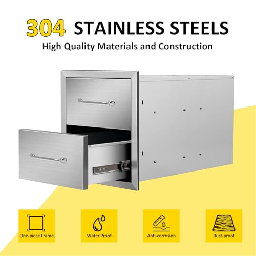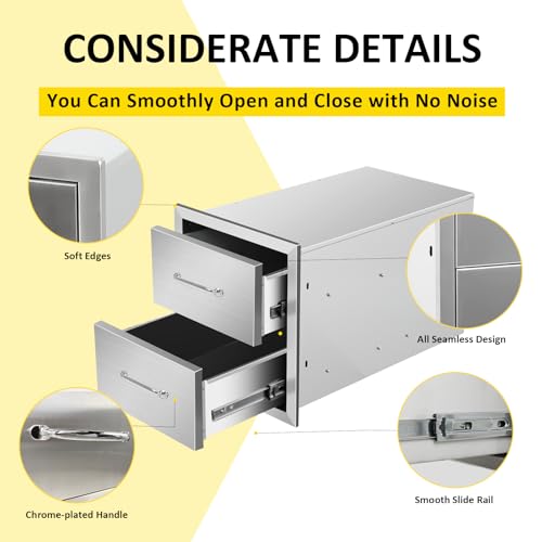 【Durable Construction】Crafted from heavy-duty 304 stainless steel, the outside kitchen drawer is designed to resist corrosion, rust, and harsh weather conditions, our drawers ensure long-lasting durability, built to resist the rigors of out of doors use.