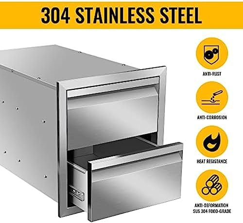 Humanized Design——The BBQ drawers stainless steel is equipped with smooth sliding rails, mounted on both sides, which facilitates the smooth roll-in and roll-out of the drawer, without difficulty. The equipped handles can also help you to open and close the drawer easily.