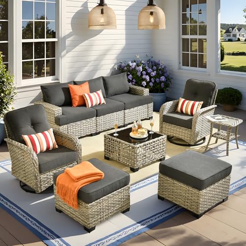 Sectional & Suitable: Patio furniture Sectional sofa sets freely rearranged into different combination for different occasion, Widely used for out of doors patio, porch, backyard, balcony, poolside, garden and other suitable space in your house(When you do not use it, advise you to take cushions inside or buy a cover for longer service time)