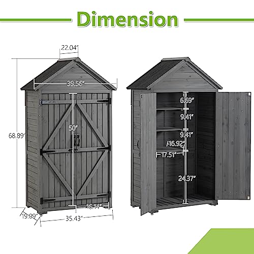 【Durable Wood Shed】The vertical storage shed is made of sturdy fir wood with secure handles, hinges and latches. The door is reinforced by an extra wood board to support its durability.
