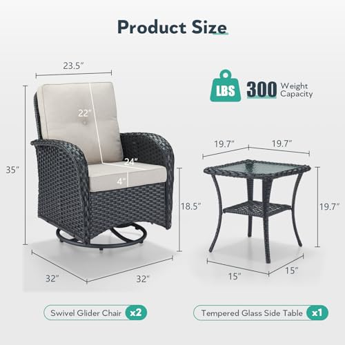 EASY TO ASSEMBLE – Designed with convenience in mind, this 3 pieces patio swivel chairs set is designed with ease of assembly in mind. Comes with simple furniture installation instructions and can be assembled in 1 person without any additional tools