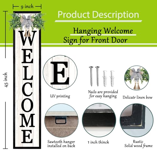 【Ideal Size】: welcome sign measures 45 inches tall, 9 inches wide, 1 inch thick, and weighs 2.5 pounds. can hang or lean it against the yard, entrances, garage, to show your warm welcome to your guests.
