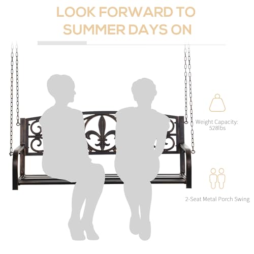Versatile Hanging: The Outsunny Outside Steel fleur-de-lis garden swing has versatile hanging options. Hang from the underneath of your patio, backyard, gazebo or on a swing frame.