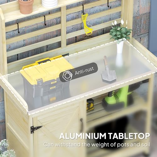 Potting Bench with Storage: Gardening work generally is a lot easier in case you have a workstation with supplies nearby. This outside potting bench with storage has a big, flat metal surface. It includes a tool hanging area, a top shelf, and two tiers of shelves spread across an open and doored area.