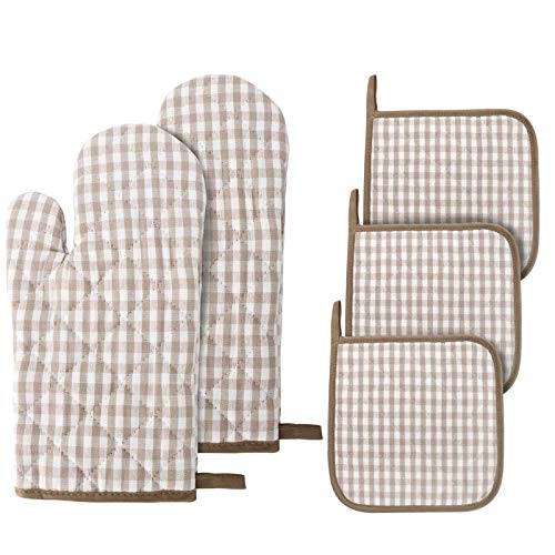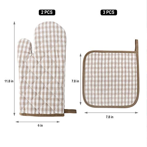 This unique accessory set comes with 2 oven mitts (6 X 12in) and 3 pot holders (7.8 X 7.8in)
