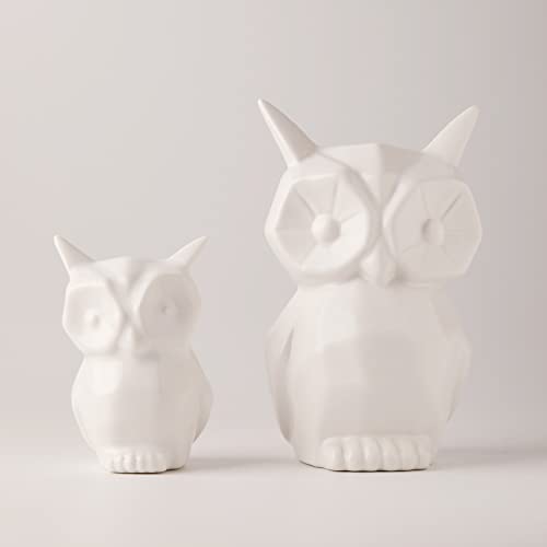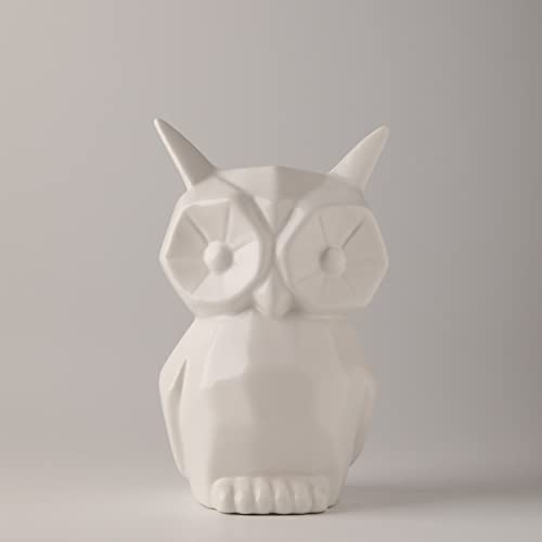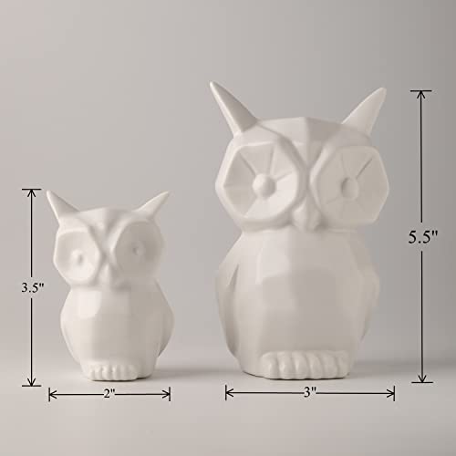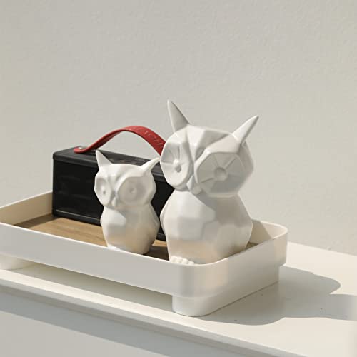 Owl Statue for Home Decor Glazed Ceramic Owl Figurine Modern Bird Figurine Owl Statue for Cabinet Fireplace Mantel Living Room Bedroom Ornaments, Owl Gifts for Owl Lover (White)