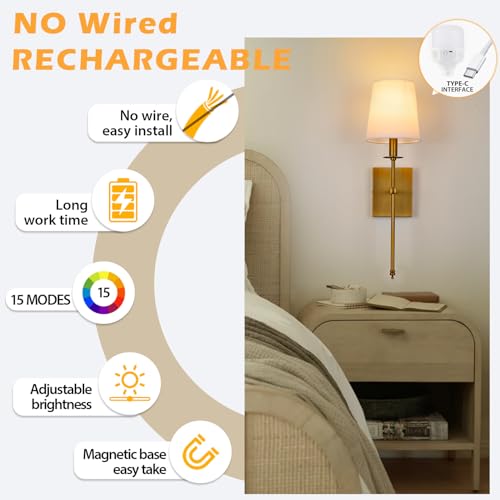 Battery Operated& Easy Installation: These wall sconces are battery-powered and require no wiring, making them perfect for any room. Install the wireless wall lights effortlessly without an electrician, enhancing your bedroom, living room, or hallway decor.Ideal for renters and DIY decorators!