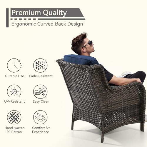 Sturdy and Stylish Design: Crafted with a rustproof powder-coated steel frame and expertly hand-woven rattan, these chairs offer a classic and durable design that may fortify as much as 250 pounds, perfect for outside living spaces.