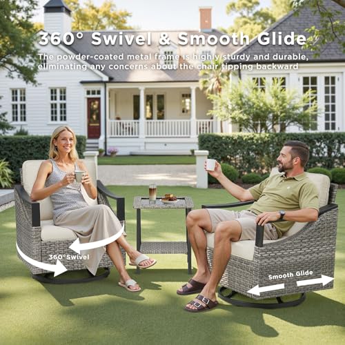 360° Swivel & Glider Backward and forward: This outdoor swivel chair features a unique base for effortless 360-degree rotation and smooth glider Backward and forward. Unlike typical rattan chairs, its ergonomic design offers ultimate flexibility-perfect for lounging, chatting, or enjoying the view. Ideal for decks, balconies, and gardens, it’s the very best addition to any outdoor space for total relaxation