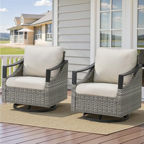 • Patio Wicker Chairs Swivel Rocker Outdoor Swivel Rocking Patio Chairs Set of 2 Wicker Chair PatiFurniture Sets with Covered Cushions for Porch Balcony Patio Deck GrayBeige