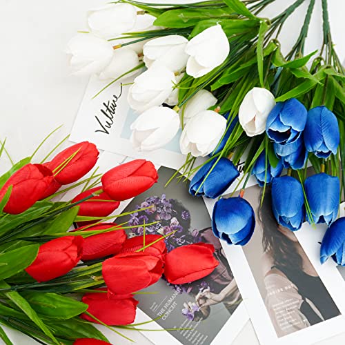 Memorable Memorial: These 4th of July tulips artificial flowers will be nice additions for the wedding, birthday party, Independence Day, Veterans Day, Memorial Day, Presidents’ Day, Patriotic Celebrations or other patriotic activities, and to display your American pride year-round