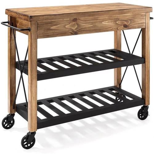 The relaxed way of life of French wine country comes to life in Pemberly Row’s new rack. Its rustic design is reflective of a time when recycling wasn’t a societal choice, but an approach to life. Starting with a superb pine top, we simulate the preferred “reclaimed” wood look by hand–etching a weathered plank design into the outside. The wealthy honey finish extends to the sturdy legs, riding on industrial style casters wrapped in rubber. Two spacious drawers take a seat on full-extension glides, providing maximum utility. The sturdy metal shelves are finished in black and are perfectly notched to protected individual wine bottles. Completing the package are industrial style drawer pulls, towel bars, and X-supports. The Pemberly Row rack is very best for any kitchen activity slicing, dicing, mixing, or mingling.Features:Subject material: Iron 10%, MDF, pine veneer wood 75%, steel 15%Finish: Natural and blackHeavy-duty industrial style metal castersCabinet and top constructed of solid pineFinished and etched to simulate the preferred reclaimed wood lookPowder-coated steel shelvesDrawers mounted on ball bearing glidesSlotted shelves very best for wine storage