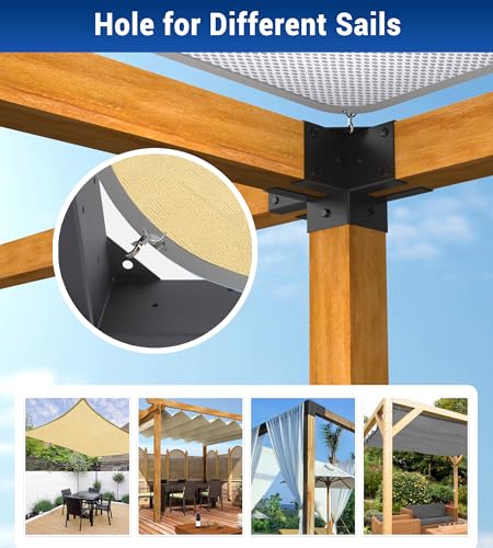 Versitle Pergola Accessories: Top adaptor holes at pergola corner brackets allow attachment of different shade sails, enhancing both functionality and aesthetics of your outside area