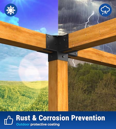 Heavy-Duty: 6×6 pergola brackets kit comprised of 2mm thickened steel with precision welding, these diy frame brackets be sure that durability. Powder-coated finish adds smoothness, beauty, and resistance to corrosion and rust, standing as much as harsh weather