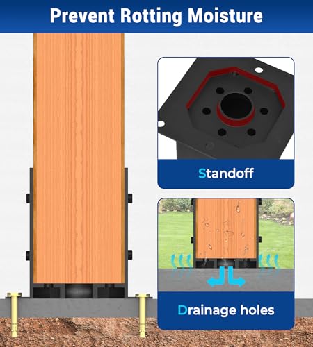Moisture Protection: The 6×6 post base elevate wood posts off the bottom, preventing moisture-induced rot. Bottom drainage holes efficiently dispose of moisture, ensuring dryness and prolonging the lifespan of your structure