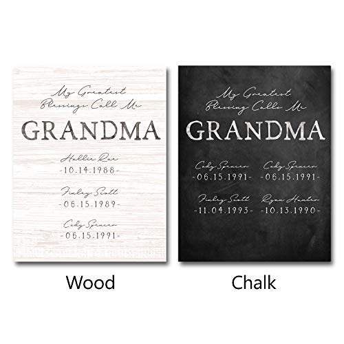 PERSONALIZED: This unique print features “My Greatest Blessings Call Me Grandma,” and includes all of her grandchildren’s names or grandkid’s and birthdays as a part of the art.