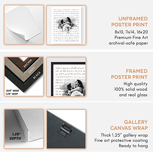 PERFECT FOR SENTIMENTAL OCCASIONS: Crafted with love, our custom song lyrics prints can be gifted for weddings, engagements, 1st to 50th anniversaries, Valentine’s Day, Mother’s Day, Father’s Day, birthdays, Christmas, holidays, or any sentimental occasion. Create a thoughtful and memorable personalized gift for your loved ones – for your wife, husband, fiance, daughter, son, daughter-in-law, sister, parents, family, friends, or any special couple!