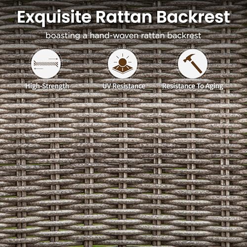 Swivel Seating Comfort: The bar stools boast a 360-degree swivel design, rattan backrests, and 3.5-inch thick cushions for all-day comfort and ease of movement.