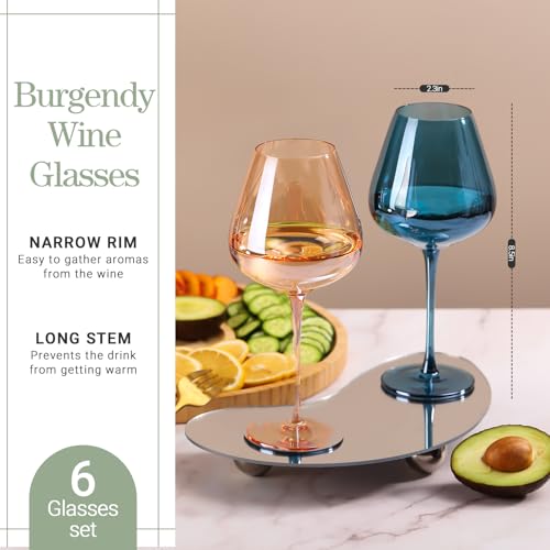 The muted colored wine glass set is a stylish addition to any glassware collection. Sold as a set of 6, the glasses come in elegant muted colors such as rose, blue, green, grey,peach and amber, perfect for any occasion.