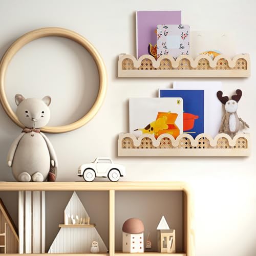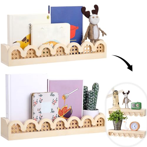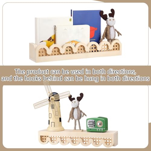 Versatile Decor Accent: this scalloped rattan wall shelf is nice for themed rooms like a nursery, classroom, or a hunting lodge with a jungle flora and fauna theme; You’ll be able to even use your floating bookshelf room storage and organization to display books, toys, photos, and other cherished items