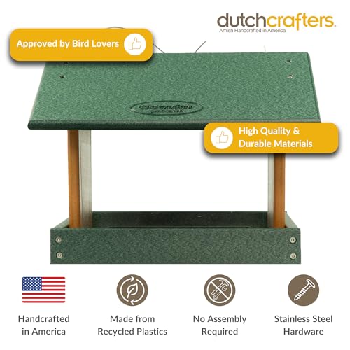 Heavy Duty Bird Feeder – Our hopper feeders for wild birds are crafted from HDPE recycled plastic poly lumber that may be water resistant, making the covered bird feeder hopper durable and long lasting. Our recycled plastic bird feeder has an aluminum mesh tray for drainage, stainless steel hanging wire and hardware to prevent rust