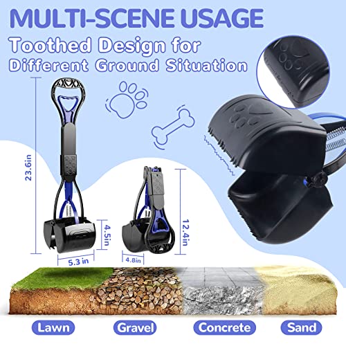 【MULTI-SCENE USE】: The open part of the claw has a toothed design. So no matter the ground is grass or dirt or any other situation, you’ll use the poop picker as usual as you’ll.