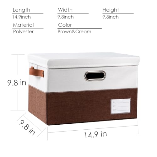 PRANDOM Foldable Storage Bins with Lids [3-Pack] Fabric Collapsible Storage Boxes Baskets Cubes Containers with Handles for Closet Living Room Bedroom (Brown & White 14.9×9.8×9.8”)