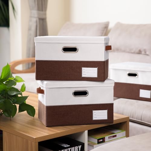 • PRANDOM Foldable Storage Bins with Lids 3 Pack Fabric Collapsible Storage Boxes Baskets Cubes Containers with Handles for Closet Living Room Bedroom Brown White 149x98x98