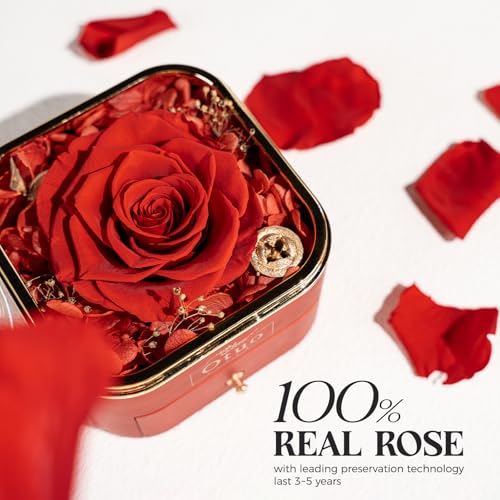 Preserved Roses Gift Jewerlry Box, Real Eternal Rose Flower with Necklace, Gifts for Girlfriend, Mom, Women, Wife, Birthday and Mothers Day