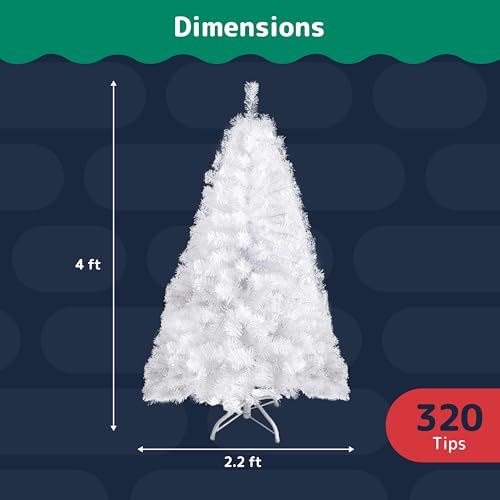 PREXTEX White Christmas Tree – Full-Bodied 4 ft Christmas Tree – Artificial 320 Tip Hinged Canadian Fir – Small Christmas Tree with Sturdy Metal Stand for Small Spaces, Easy to Assemble and Store