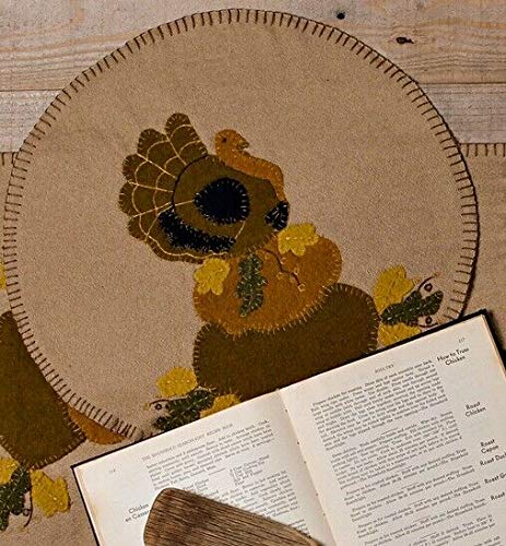 New Primitive Country FALL TURKEY PUMPKIN STITCHED CANDLE MAT Doily 15″ – By MIABE