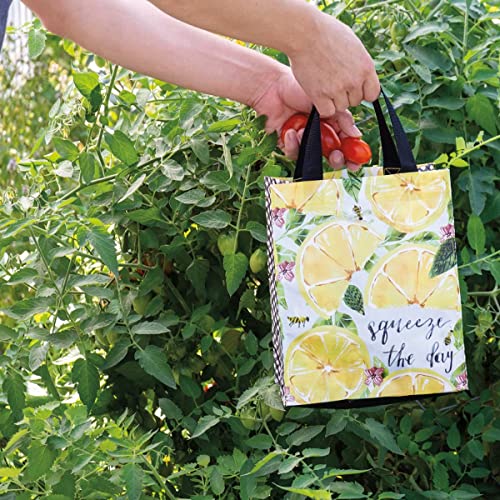 Made of post-shopper subject material, this double-sided day-to-day tote Options watercolor lemon designs and hand lettered “Squeeze The Day” sentiment. Gusset Options black and white plaid pattern for additonal interest. Bag contains complementing nylon straps.