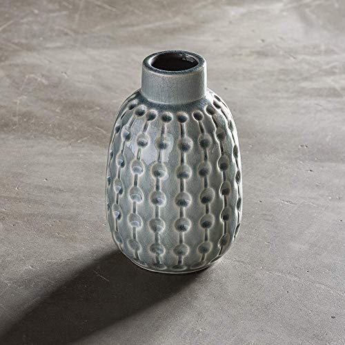 A stoneware vase in Gentle blue that includes textural divot designs. It enhances smartly with coordinating items in assortment for an enthralling indoor garden.