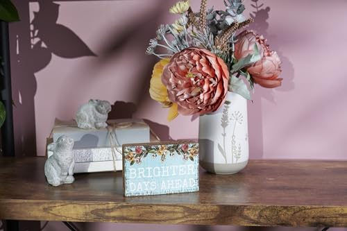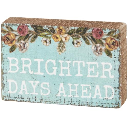 A picket block sign displaying spring flowers above an inspirational sentiment on spring blue background that reads “Brighter Days Ahead.” Design is replicated from original artwork painted onto burlap canvas, giving the art a singular depth and texture. Block sign features distressed main points with coordinating natural picket at the sides and back. Our Brighter Days Ahead block sign is simple to hold by way of predrilled keyhole slot or can free-stand by myself. An uplifting seasonal home accent with quite a few display options.