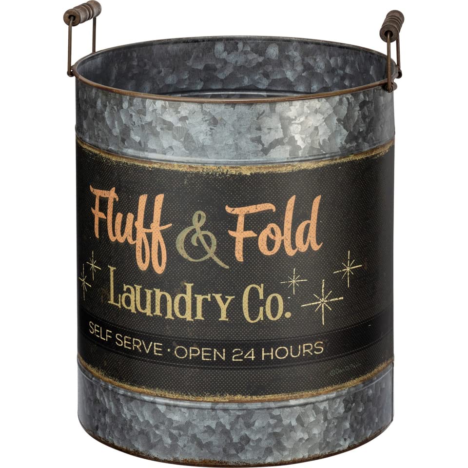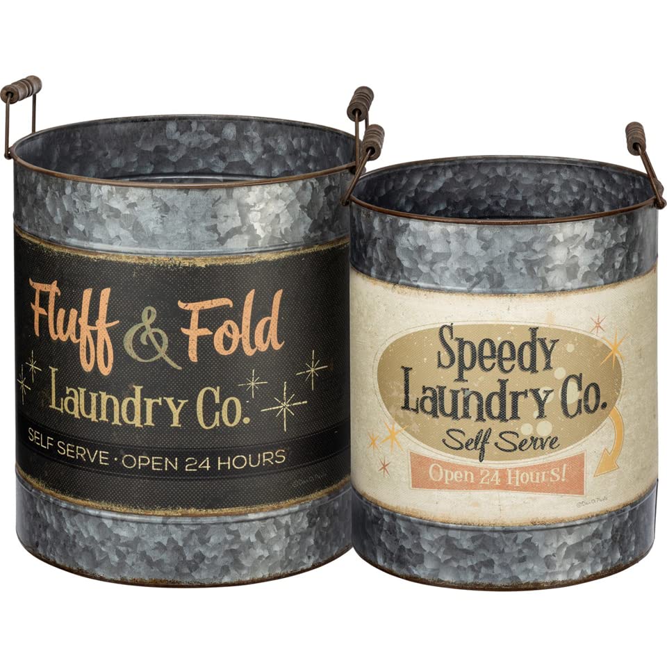 NOSTALGIC RETRO DESIGN: The larger bucket includes a nostalgic unfashionable laundry design that reads “Fluff and Fold Laundry Co, Self Serve, Open 24 Hours,” adding a touch of vintage flair in your space.