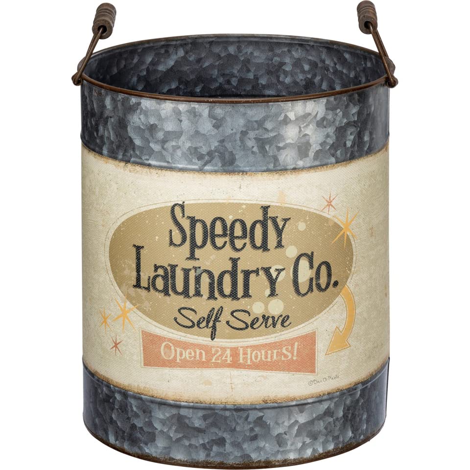 CHARMING COMPLEMENTARY DESIGN: The smaller bucket includes a charming “Speedy Laundry Co, Self Serve” design, complementing its counterpart with equal charm.