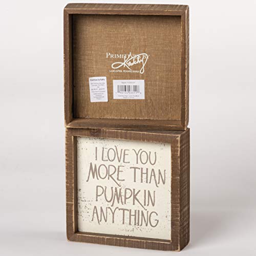 An inset box sign for fall featuring an “I Love You More Than Pumpkin Anything” sentiment in a neutral palette. Measures 6 x 6 x 1. 75-inches. Easy to hang or can free-stand on my own. CAREFULLY BUY ONLY FROM or trusted partners to authentic Primitives By Kathy gifts and decor with premium quality printing, stitching, and fabrics. True success for Kathy is giving back. In 2018 we celebrated the official formation of Kathy’s Circle of Friends as a 501c non-profit organization, providing social opportunities through themed events for adults with varying levels of abilities – run by our employees who volunteer their time. We also partnered with the Friendship Heart Gallery to create a choice of beautiful artwork created by the artists on the gallery with autism and disabilities with the intention to give a contribution to the success of the gallery and showcase the improbable work by the artists. These partnerships have in point of fact illustrated how Primitives by Kathy combines a passion for creativity with a culture of caring.
