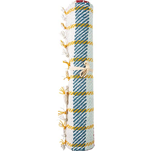 A woven cotton rug that includes multicolored stripes and skid-resistant backing. Contains fringe main points for extra passion. Rug is smartly rolled with tag that includes full design.