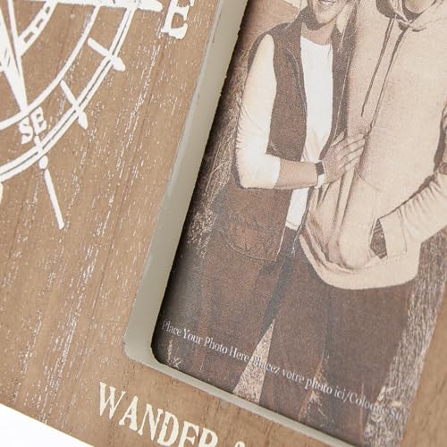A picket plaque frame displaying compass rose debossed design and “Wander & Wonder” sentiment on natural picket background. Design features coordinating cream color on sides and back. Frame fits a 3 inch x 5 inch photo and will easily get replaced by means of clips on back. Our Wander & Wonder plaque frame is simple to display the use of metal easel on back to free-stand. A country option for displaying favorite memories as on a regular basis home décor.