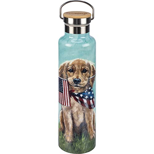 Primitives through Kathy Pet Canine with American Flag Insulated Stainless Metal Watter Bottle Thermos 25 Oz