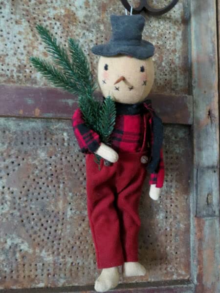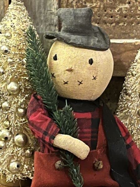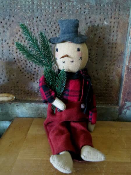 Grubby Primitive Rustic Christmas SNOWMAN w Red Black Flannel Overalls Doll – By TAKAZOON